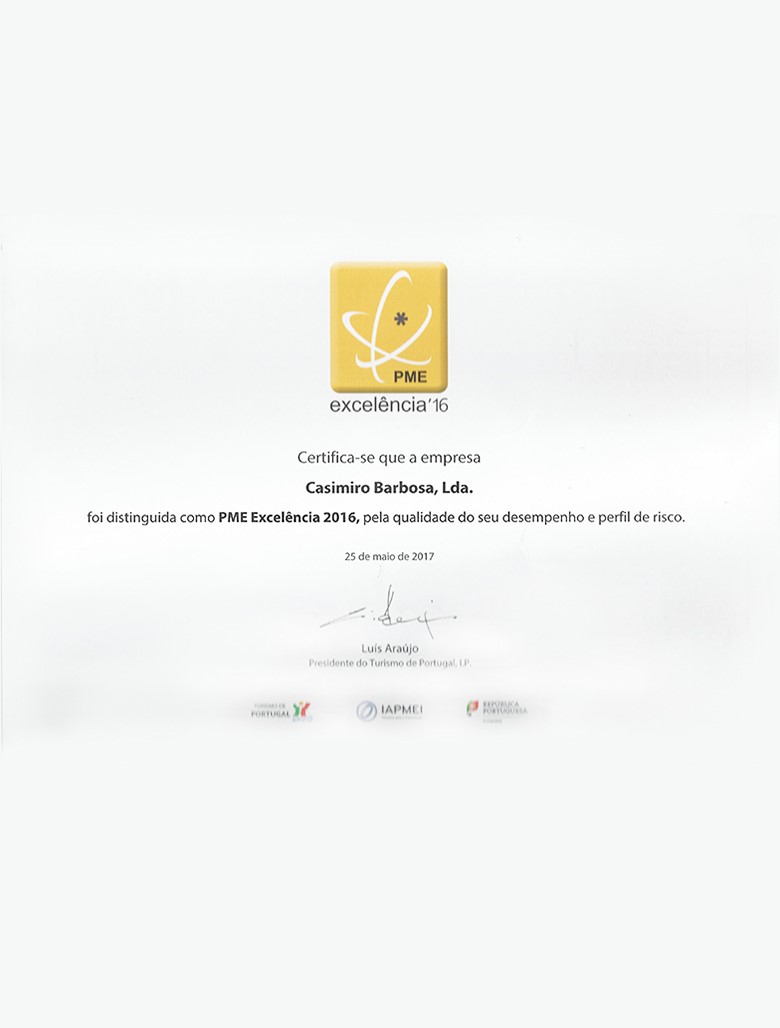 A Marisqueira de Matosinhos was awarded the PME EXCELÊNCIA 2016 diploma.