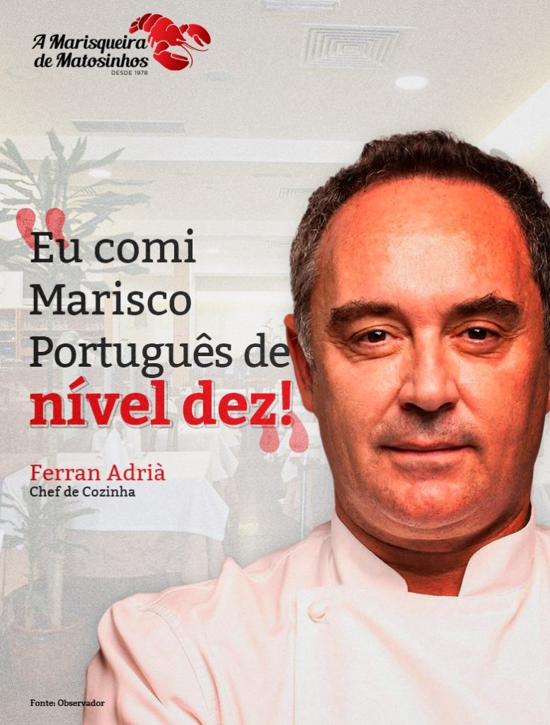 En una entrevista con el Observador, Ferran Adrià, clasificó nuestro Marisco en el nivel diez, ¡convirtiéndolo en uno de los mejores del mundo! Noticia completa: http://bit.do/eXRiE